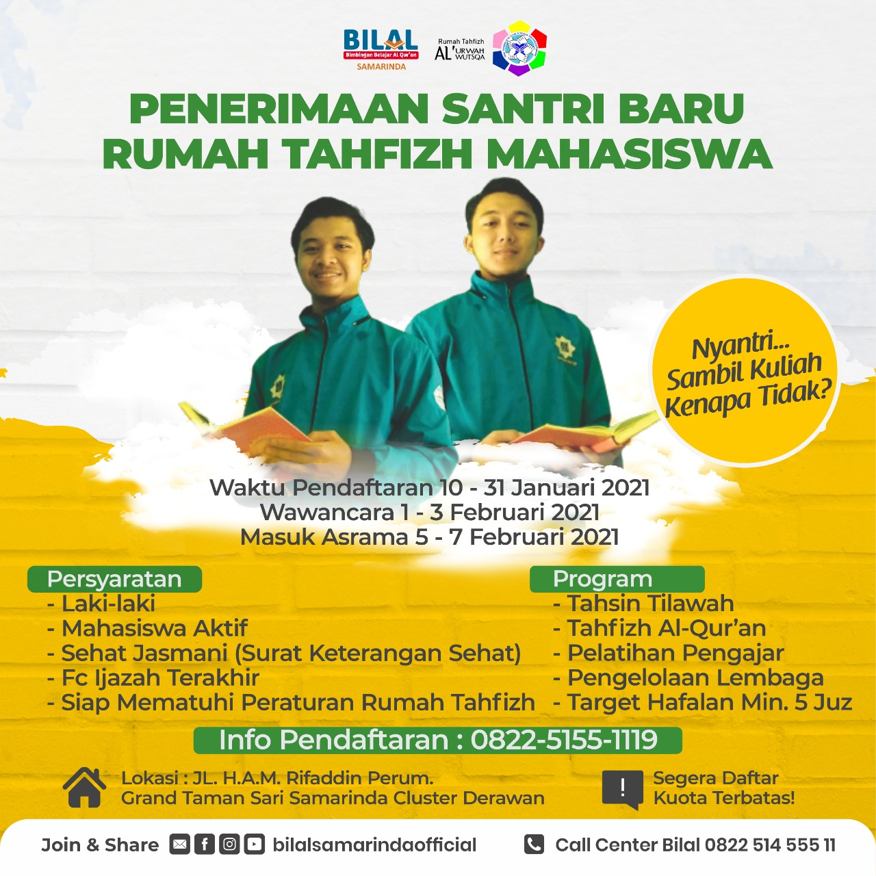 Dibuka!! Penerimaan Santri Baru Rumah Tahfizh Mahasiswa