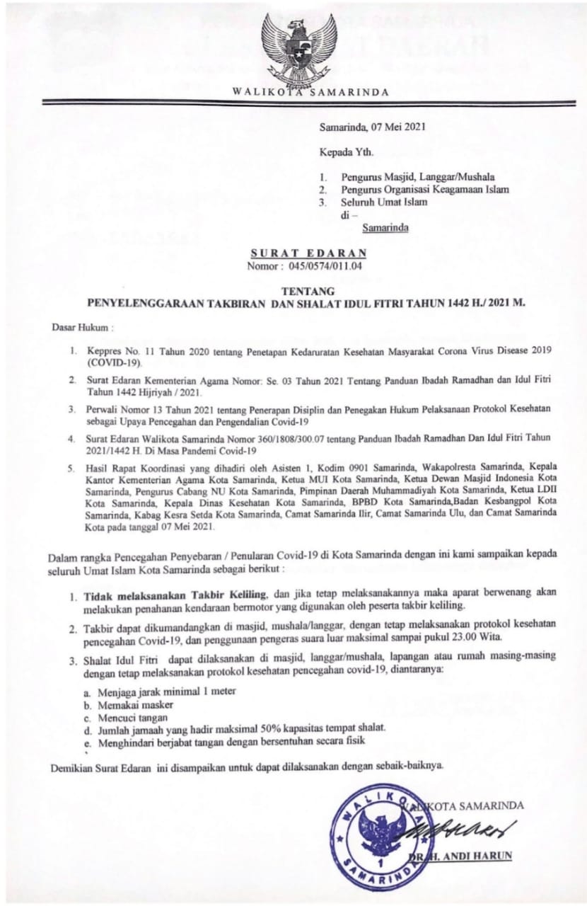 Terlampir di bawah ini isi lengkap dari surat edaran Walikota Samarinda No. 045/0574/011.04